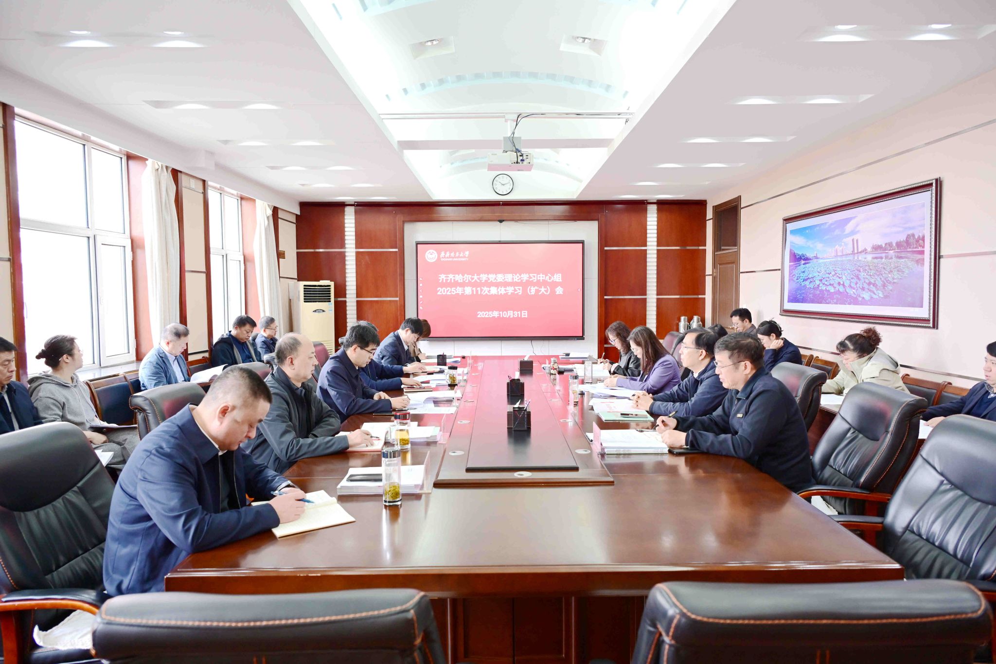 10月31日上午,學(xué)校黨委理論學(xué)習(xí)中心組在辦公樓504會(huì)議室召開2025年第11次集體學(xué)習(xí)(擴(kuò)大)會(huì),專題學(xué)習(xí)研討黨的二十屆四中全會(huì)精神。校黨委書記丁宏主持會(huì)議并講話。會(huì)上,與會(huì)同志集中學(xué)習(xí)了習(xí)近平總書記在黨的二十屆四中全會(huì)上所作的報(bào)告和重要講話精神、習(xí)近平總書記《關(guān)于<中共中央關(guān)于制定國(guó)民經(jīng)濟(jì)和社會(huì)發(fā)展第十五個(gè)五年規(guī)劃的建議>的說(shuō)明》《中共中央關(guān)于制定國(guó)民經(jīng)濟(jì)和社會(huì)發(fā)展第十五個(gè)五年規(guī)劃的建議》。副校長(zhǎng)、黨委...
